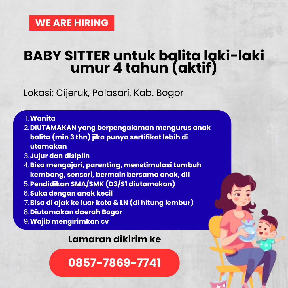 baby sitter untuk balita laki-laki umur 4 tahun (aktif)