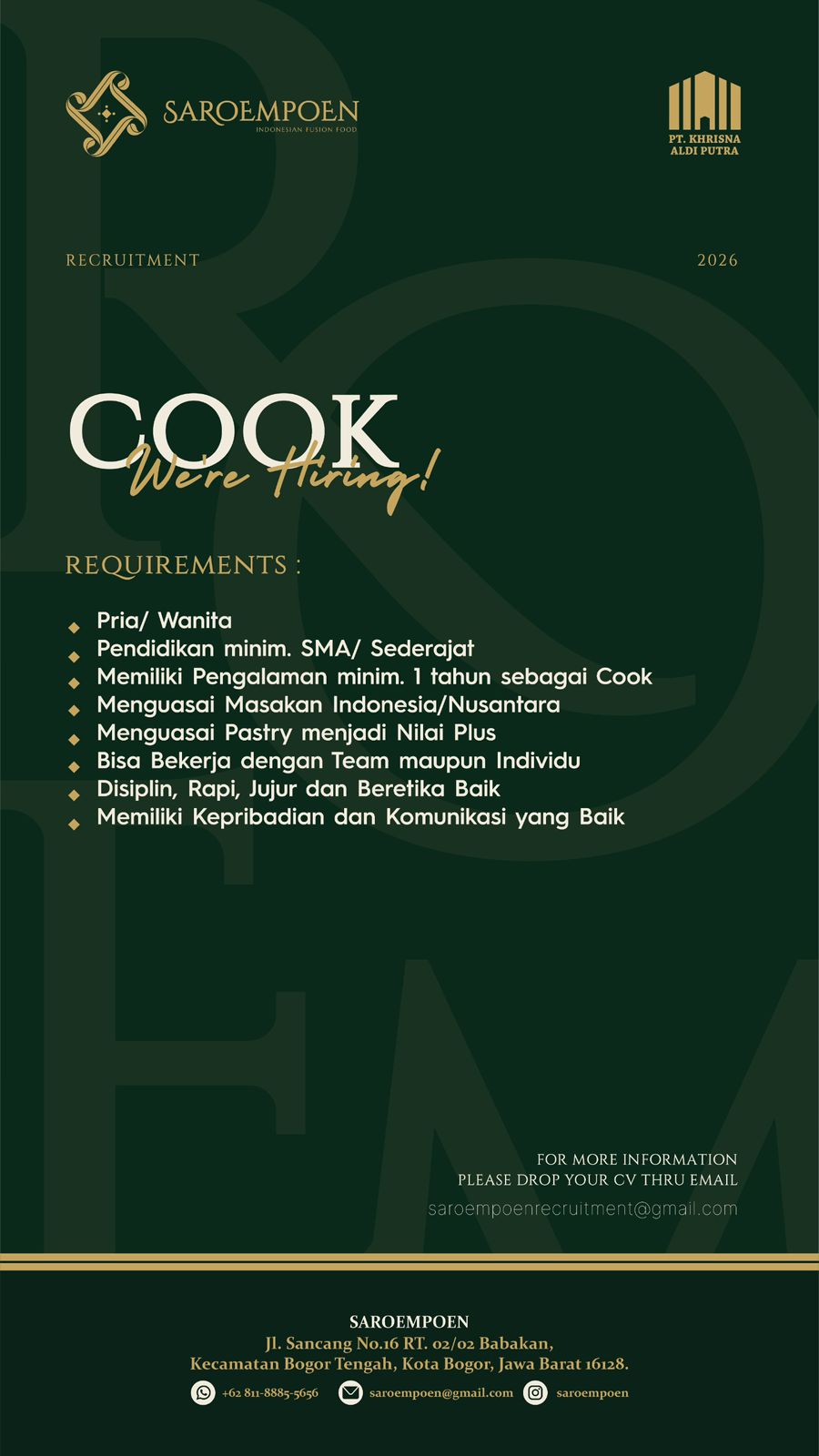 - Pendidikan minimal SMA/SMK