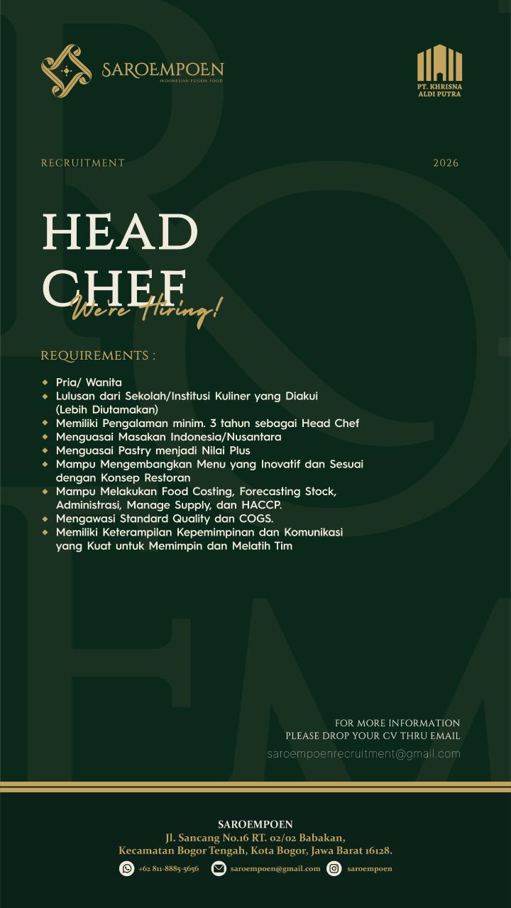 Memiliki Pengalaman minim. 3 tahun sebagai Head Chef